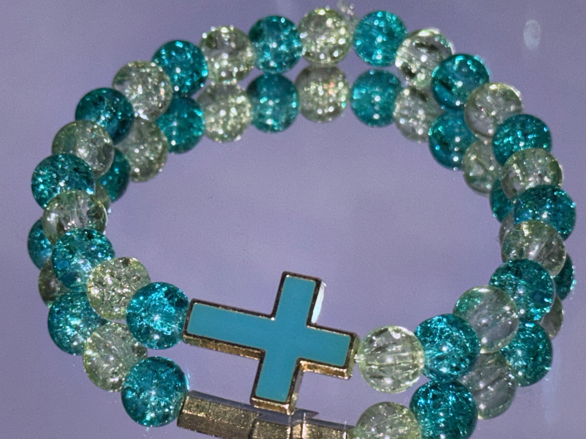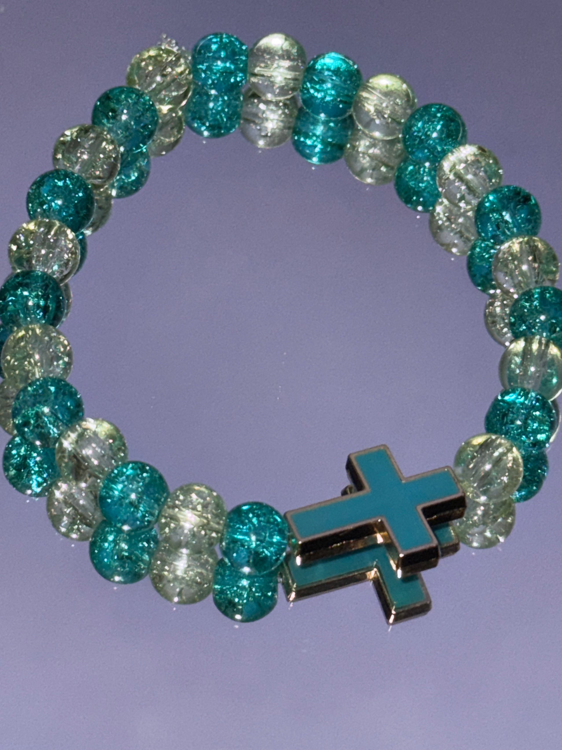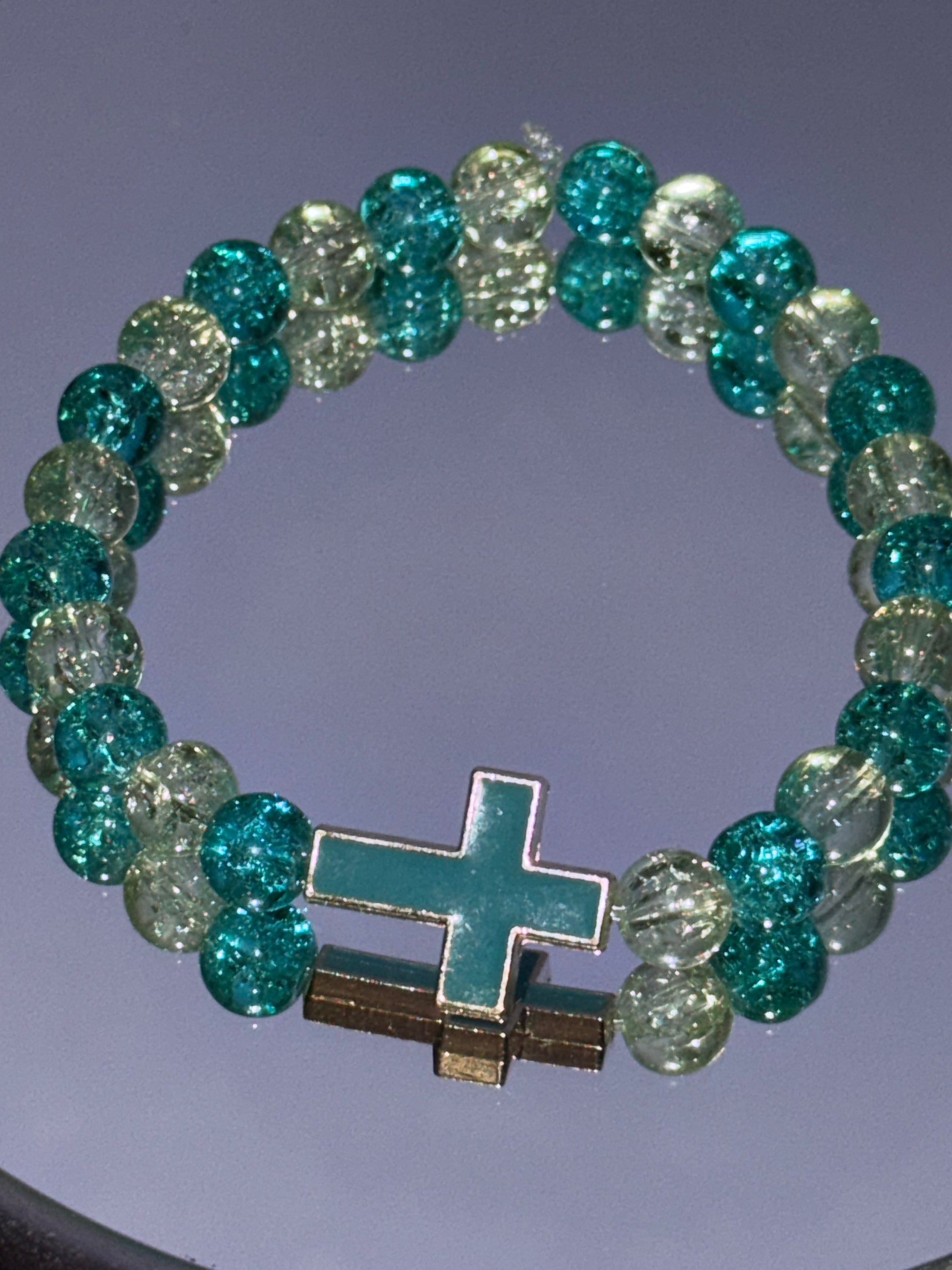 Faithful Focus – A turquoise cross is integrated vertically into the bracelet, symbolizing steadfast faith and spiritual strength.