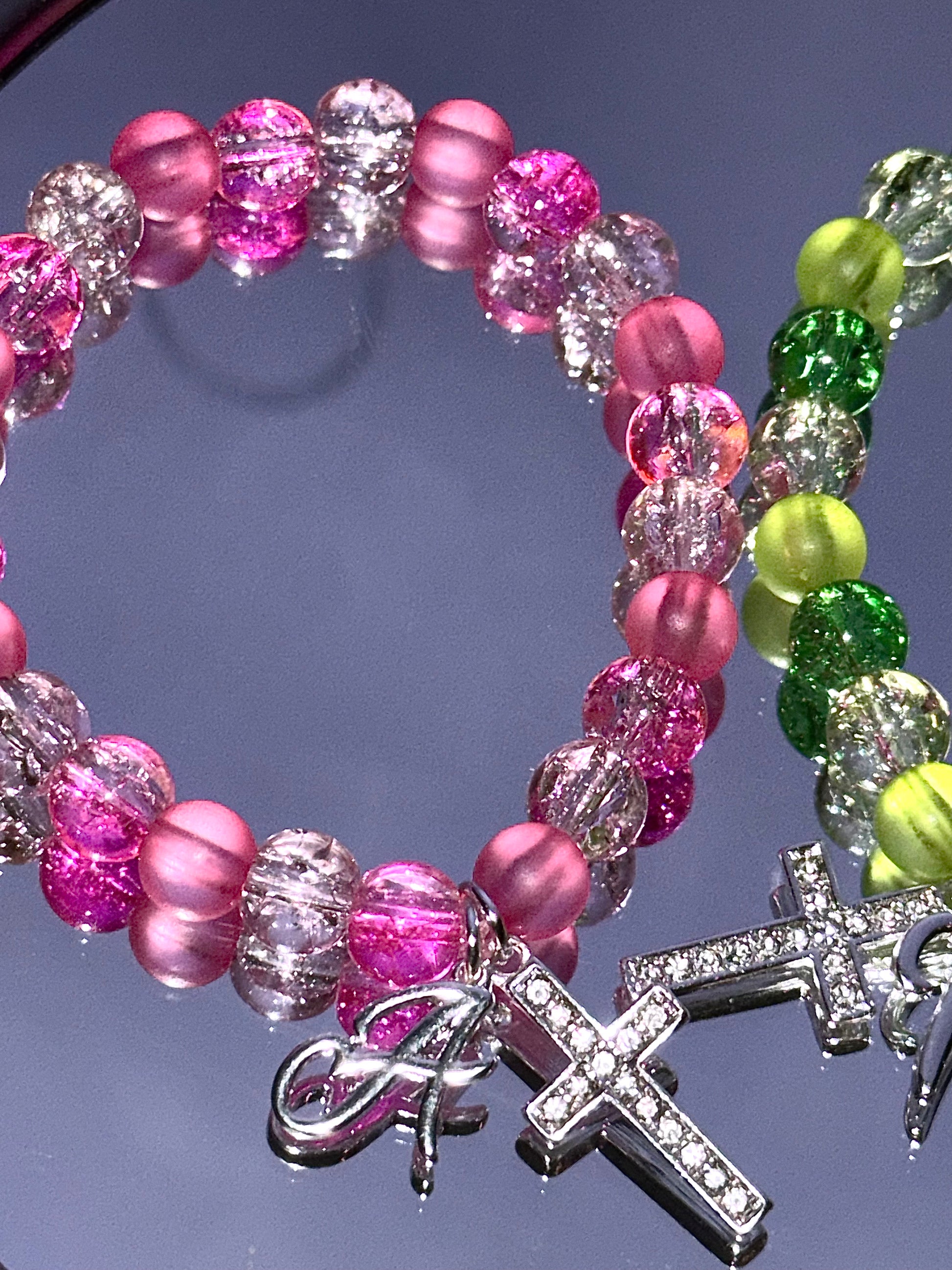 Pink Bracelet – Soft, radiant beads symbolizing Charlotte LaBouff’s bubbly, loyal personality.